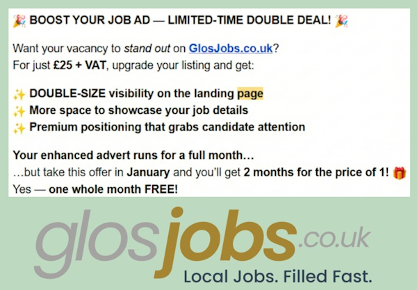 Option 3: Bijou or Bumper Bundle of job adverts - Save money and only pay one invoice. Email us at office@glosjobs.co.uk and we'll set up: