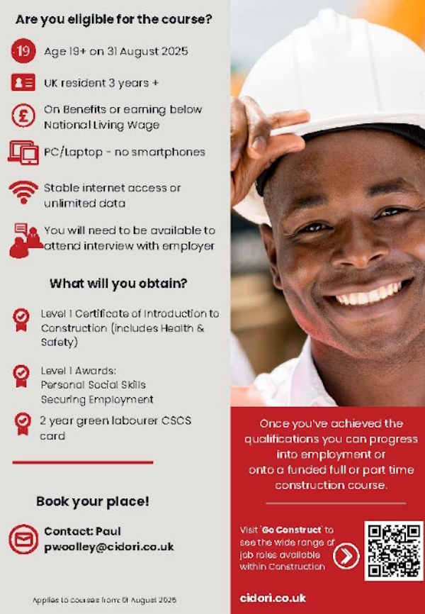 Cidori/Gloscol Online Course - Introduction to Construction Course with free CITB Test & CSCS Card