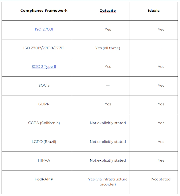 Choose Datasite if you focus on enterprise-level infrastructure protection and ISO+SOC compliance for complex or large-scale transactions.
