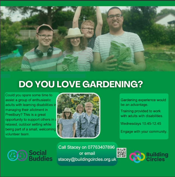 Could you spare some time to assist a group of enthusiatic adults with learning disabilities in managing their allotment in Prestbury.